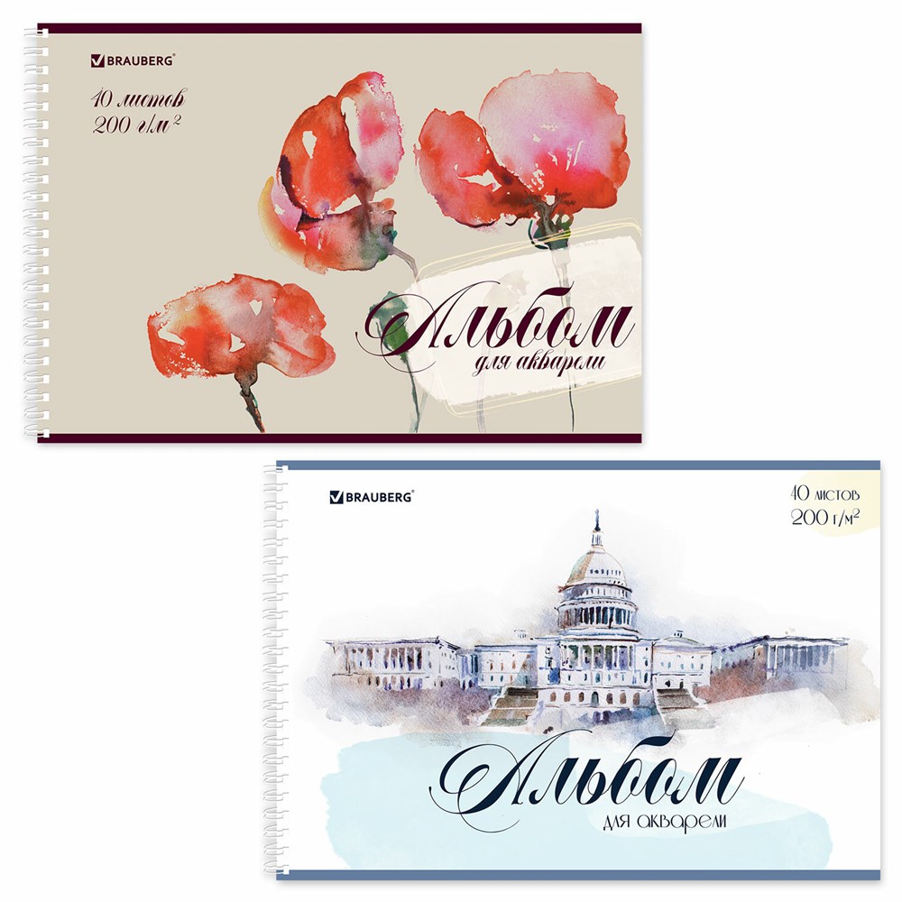 Альбом для акварели А4 40 л., бумага 200 г/м2, гребень, обложка картон, BRAUBERG, Ассорти 2 вида, 106713