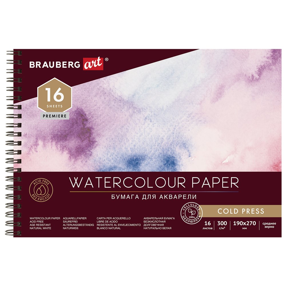 Альбом для акварели BRAUBERG ART PREMIERE предназначен для профессионалов и людей, увлекающихся живописью. В альбоме использована профессиональная импортная акварельная бумага.Альбом с профессиональной акварельной импортной бумагой плотностью 300 г/м2 из 100% целлюлозы. Содержит жесткую подложку, выполняющую роль планшета. Прекрасно подойдет как для мокрой акварели (по-сырому), так и для классической техники акварели. При впитывании воды бумага не деформируется, что обеспечивает равномерную и плавную заливку, стойка к стиранию, скоблению. Идеально держит цвет, тона останутся выразительными и экспрессивными. Без кислот, что гарантирует долговечность ваших творений! Бумага BRAUBERG ART PREMIERE подойдет как для начинающих любителей акварельной живописи, так и для выражения самых смелых идей профессионалов.
