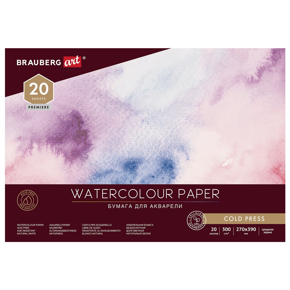Альбом для акварели, бумага 300 г/м2, 270х390 мм, среднее зерно, 20 листов, склейка, BRAUBERG ART PREMIERE, 113223