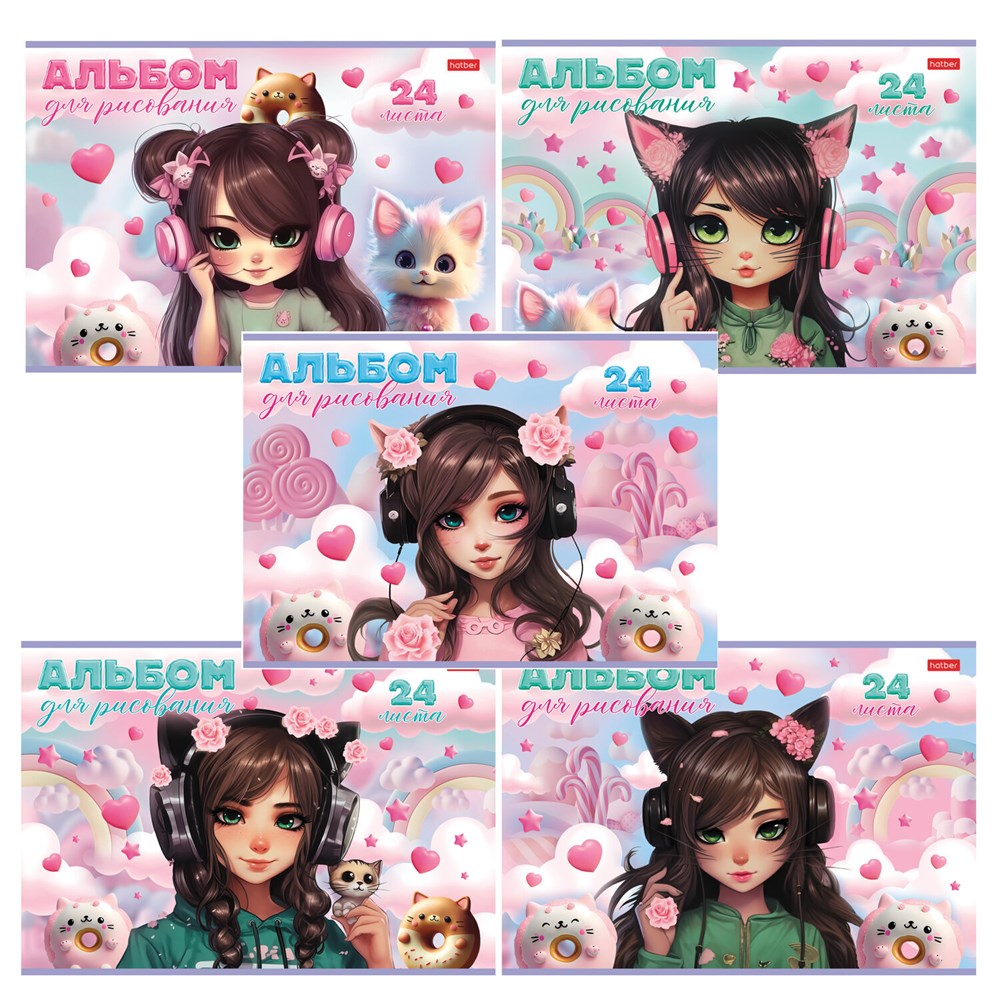 Альбом для рисования А4 24 л., скоба, обложка картон, HATBER, 205х290 мм, "Девочка-кошка", 085145, 24А4В