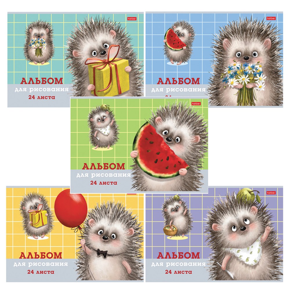 Альбом для рисования А4 24 л., скоба, обложка картон, тиснение, HATBER, 205х290 мм, "Хорошо быть ёжиком", 079721, 24А4тВ