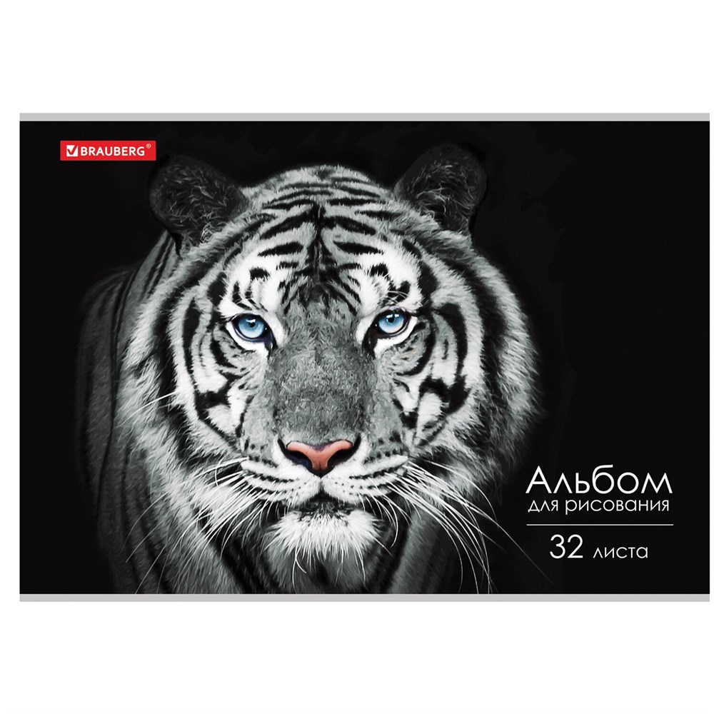 Альбом для рисования А4, 32 л., скоба, обложка картон, BRAUBERG, 202х285 мм, "Тигр" (1 вид), 105610
