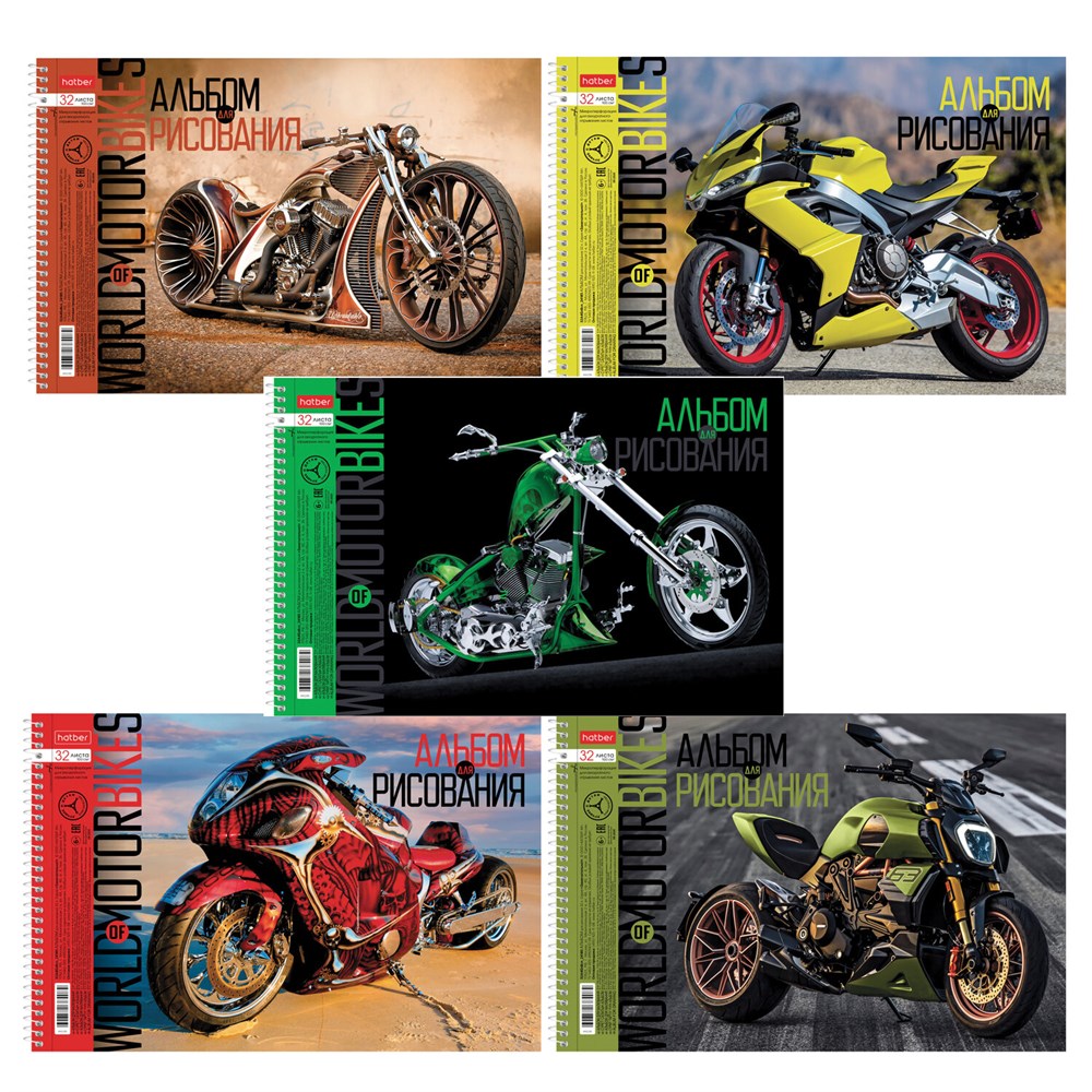 Альбом для рисования А4 32 л., спираль, обложка картон, HATBER, 198х300 мм, "Мото" (5 видов), 074763, 32А4Всп