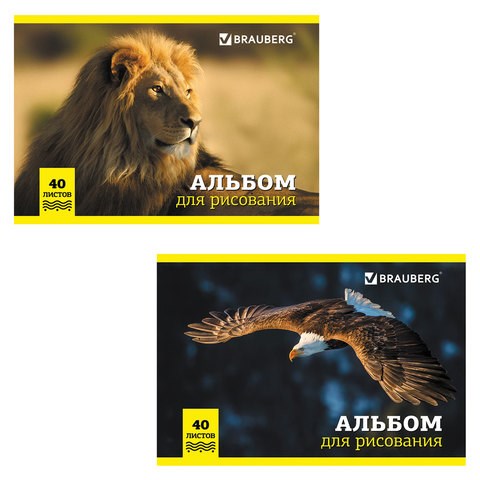 Альбом для рисования, А4, 40 л., обложка картон, BRAUBERG «Дикие животные»