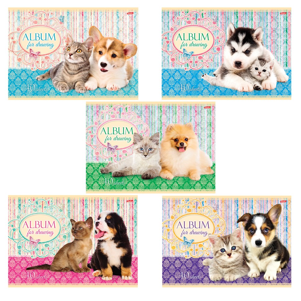Красочная серия альбомов для рисования с ярким разнообразием в дизайне обложки. Изображение домашних питомцев обязательно привлечет юных художников.Альбом А4 формата, на скобе. Внутренний блок - 40 листов, офсетная бумага 100 г/м2. Обложка изготовлена из высококачественного мелованного картона. Поставляется в 5 вариантах дизайна без возможности выбора.