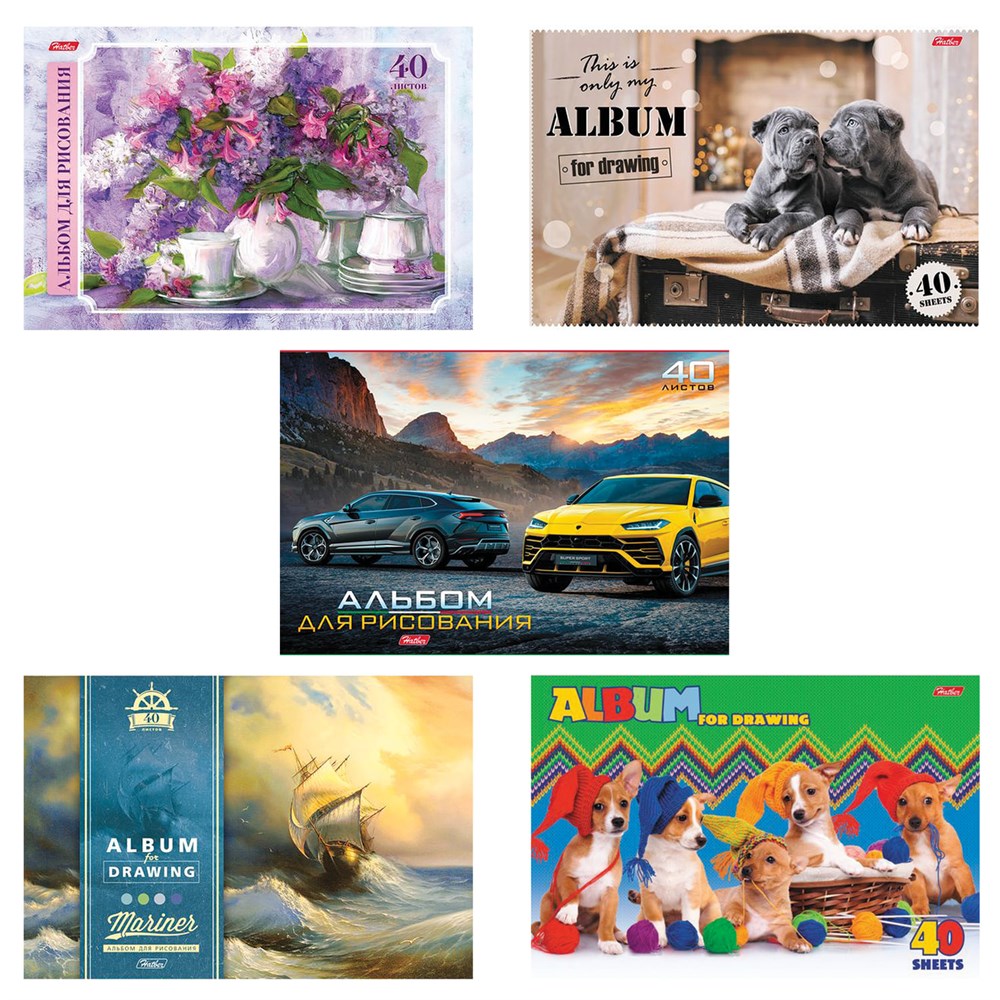 Альбом для рисования, А4, 40 листов, скоба, обложка картон, HATBER, 205х290 мм, "Ассорти", 051869, 40А4В