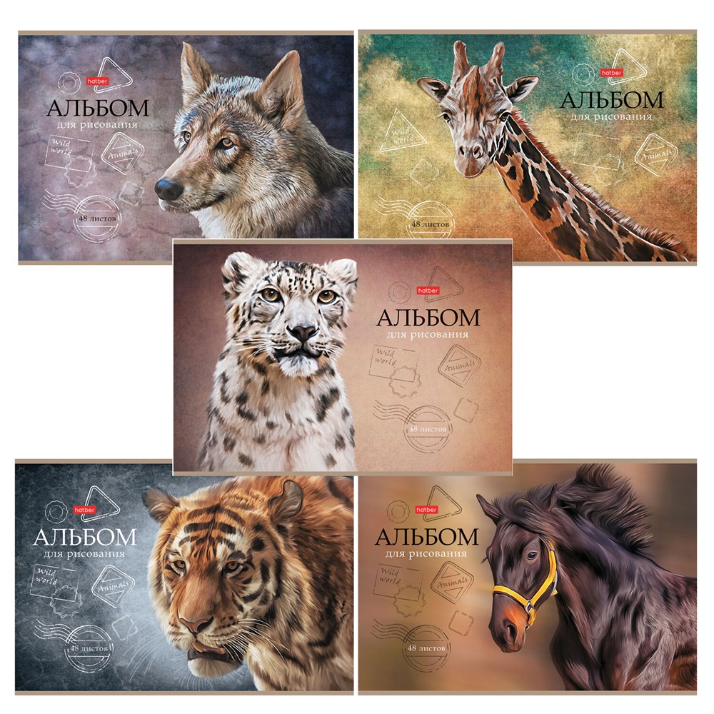 Альбом для рисования А4 48 л., скоба, матовая ламинация, тиснение, HATBER, 205х290 мм, "Дикий мир", 079735, 48А4лтВ