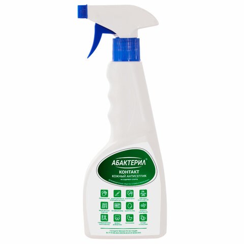Антисептик для рук и поверхностей бесспиртовой с распылителем 500 мл, АБАКТЕРИЛ-КОНТАКТ, дезинфицирующий, жидкость