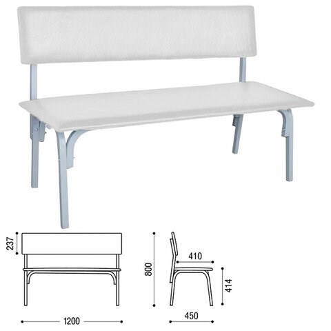 Банкетка со спинкой "Астрид", 1200х450х800 мм, каркас светло-серый, кожзам светло-серый