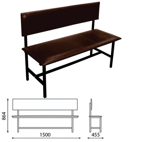Банкетка со спинкой "Берта" 1500х455х864 мм, усиленная, черный каркас, кожзам коричневый