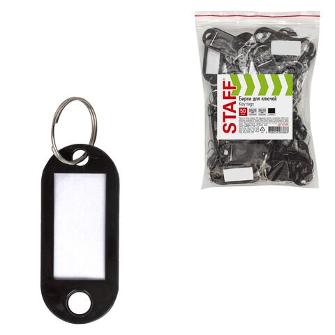Бирки для ключей КОМПЛЕКТ 50 ШТ., длина 50 мм, инфо-окно 30х15 мм, ЧЕРНЫЕ, STAFF, 237491, 88