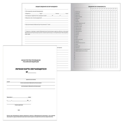 - Вид бланка: личная карточка обучающегося.