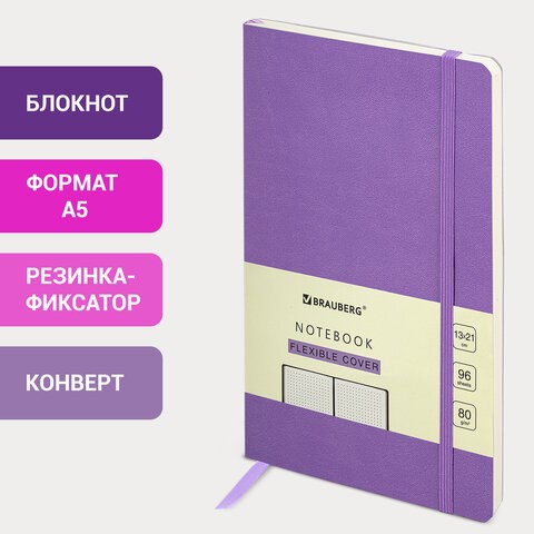 Блокнот А5 (130х210 мм), BRAUBERG ULTRA, под кожу, 80 г/м2, 96 л., в точку, сиреневый, 113013