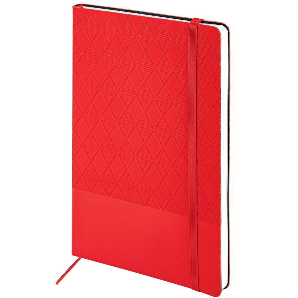 Блокнот А5 138x213 мм, BRAUBERG "Tissage", под кожу, 80 л., резинка, клетка, красный, 116603