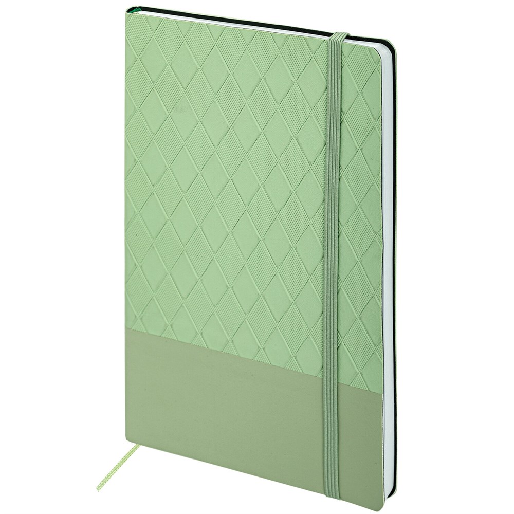 Блокнот А5 138x213 мм, BRAUBERG "Tissage", под кожу, 80 л., резинка, клетка, оливковый, 116602