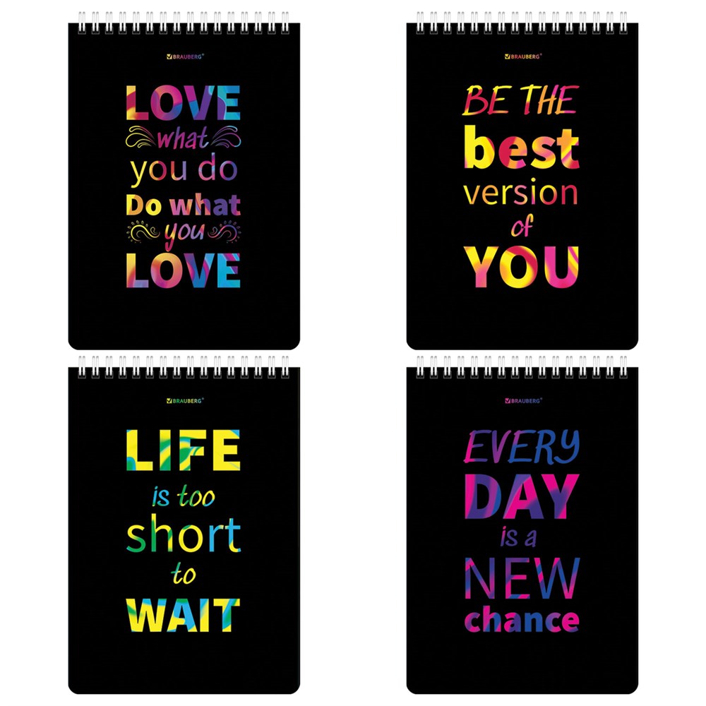 Блокнот А5 (146х206 мм), 80 л., гребень, картон, клетка, BRAUBERG, "Motivation", 114377