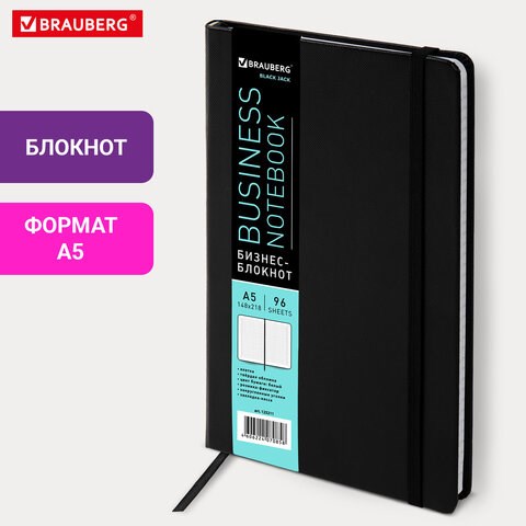 Блокнот А5 (148х218 мм), BRAUBERG "Select", 96 л., балакрон, резинка, клетка, черный, 125211