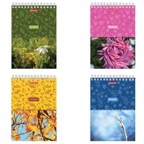 Блокнот А5 60л (146х206 мм) гребень, картон, жесткая подложка, клетка, BRAUBERG, "Четыре сезона"