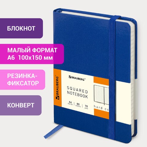 Блокнот МАЛЫЙ (100x150 мм) А6, BRAUBERG "Metropolis", балакрон, резинка, клетка, синий, 111588