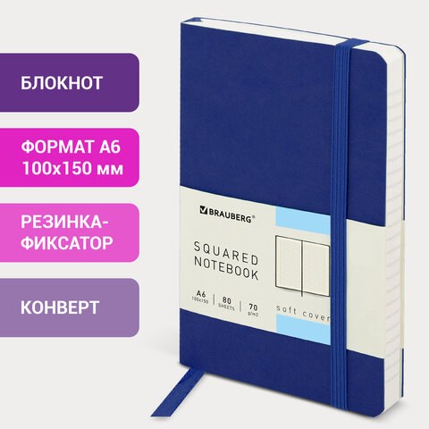 Блокнот МАЛЫЙ ФОРМАТ (100x150 мм) А6, BRAUBERG "Metropolis Ultra", под кожу, 80 л., клетка, синий, 111025