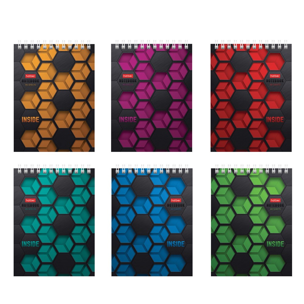 Блокнот МАЛЫЙ ФОРМАТ А6, 40 л., гребень, картон, клетка, HATBER, "INSIDE", 080475, 40Б6В1гр
