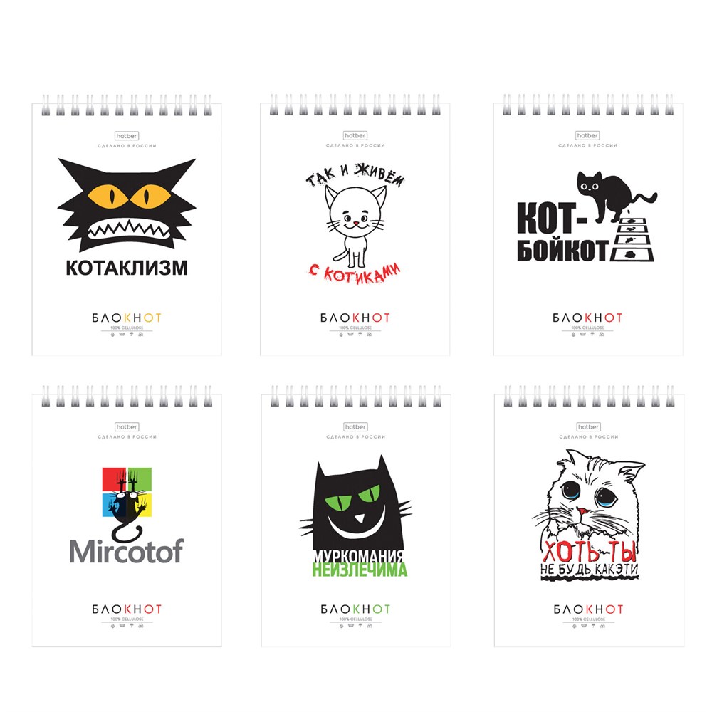 Блокнот МАЛЫЙ ФОРМАТ А6, 40 л., гребень, картон, клетка, HATBER, "Муркомания", 090640, 40Б6В1гр