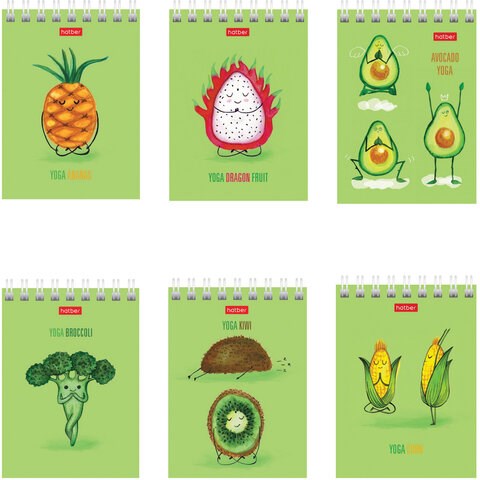 Блокнот МАЛЫЙ ФОРМАТ А7 75х105 мм, 60 л., гребень, картон, клетка, HATBER, "Йога-Фитнес", 60Б7В1гр