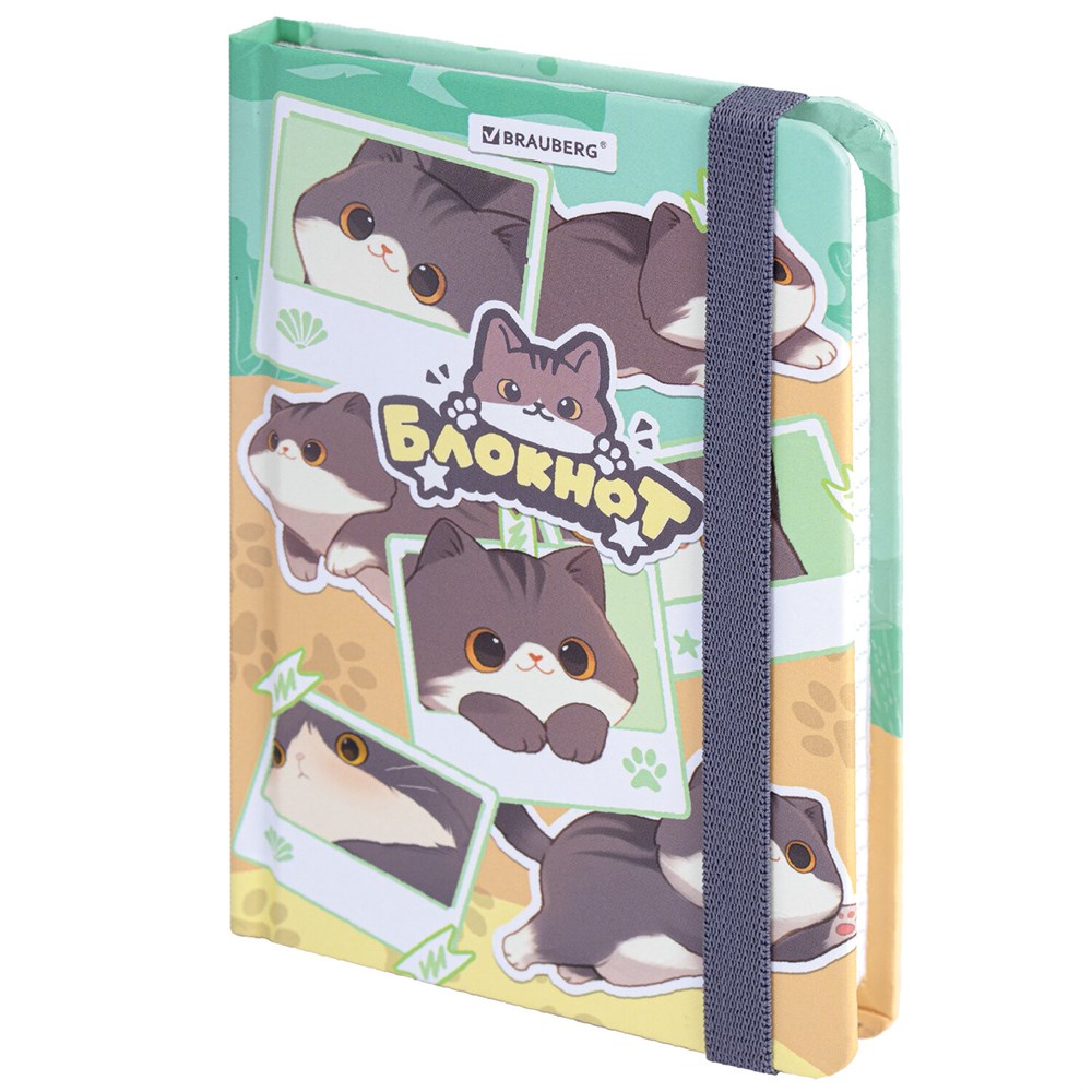 Блокнот с резинкой в клетку 96 л., МАЛЫЙ ФОРМАТ А6, 109х148 мм, BRAUBERG, кросс-серия "МИЛЫЕ КОТЫ", 116991