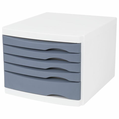 Бокс с 5 выдвижными лотками, корпус светлый, лотки серые, 235х300х355 мм, BRAUBERG "Office-Expert", 238045