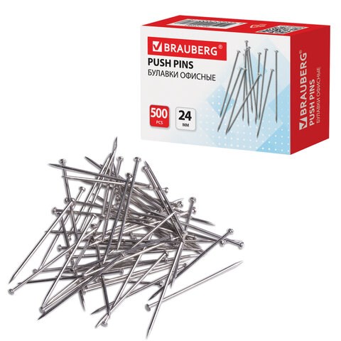 Булавки офисные 24 мм BRAUBERG 50 г, в карт. коробке, 220562