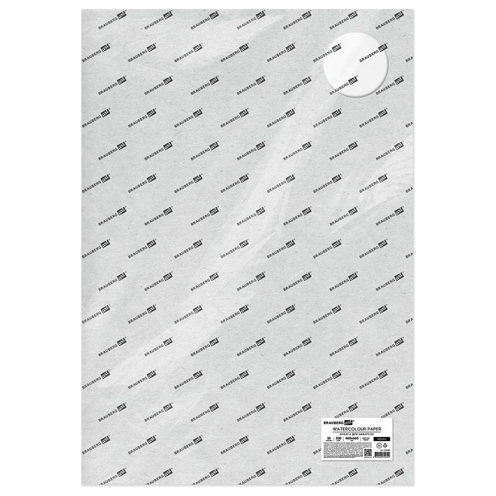 Бумага для акварели 300 г/м2 460x660 мм крупное зерно, 10 листов, BRAUBERG ART PREMIERE, 113234
