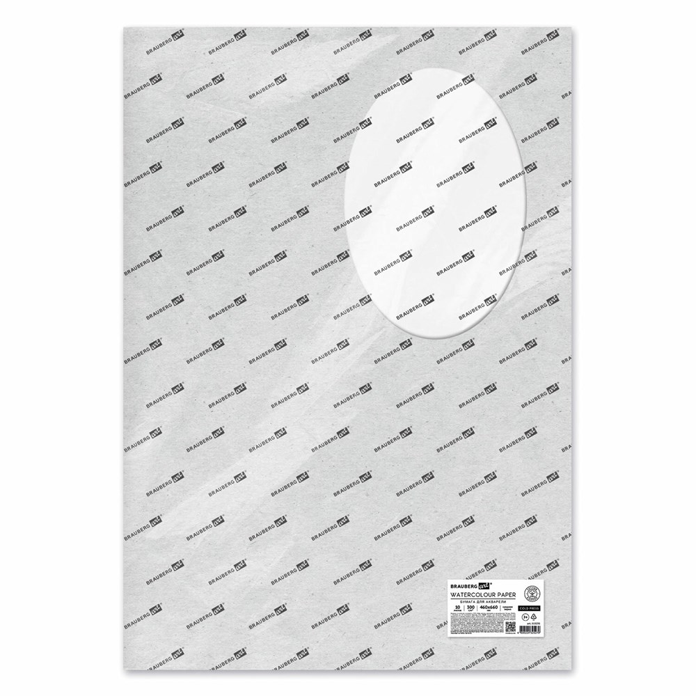 Бумага для акварели ХЛОПОК 100%, 300 г/м2, 460x660 мм, среднее зерно, 10 листов, BRAUBERG ART, "PREMIERE", 113231