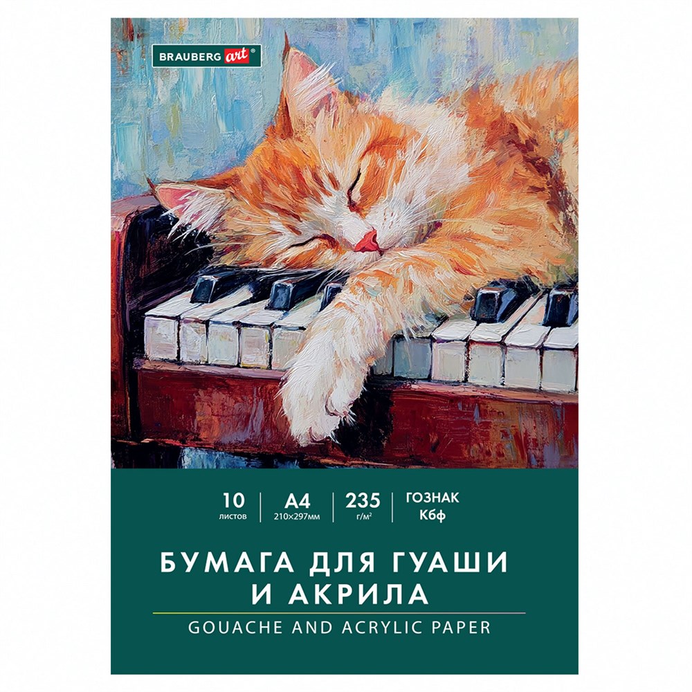 Бумага для гуаши и акрила А4 10 л., 235 г/м2, 210х297 мм, в папке, BRAUBERG ART CLASSIC, "Кот-музыкант", 117731