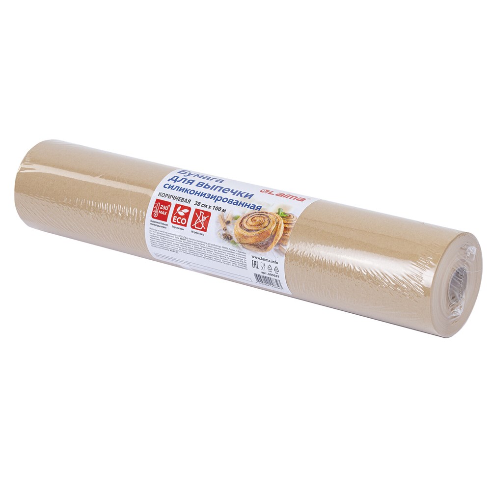 Бумага для выпечки силиконизированная, пергамент 38 см х 100 м, цвет коричневый, LAIMA, CH, 609587