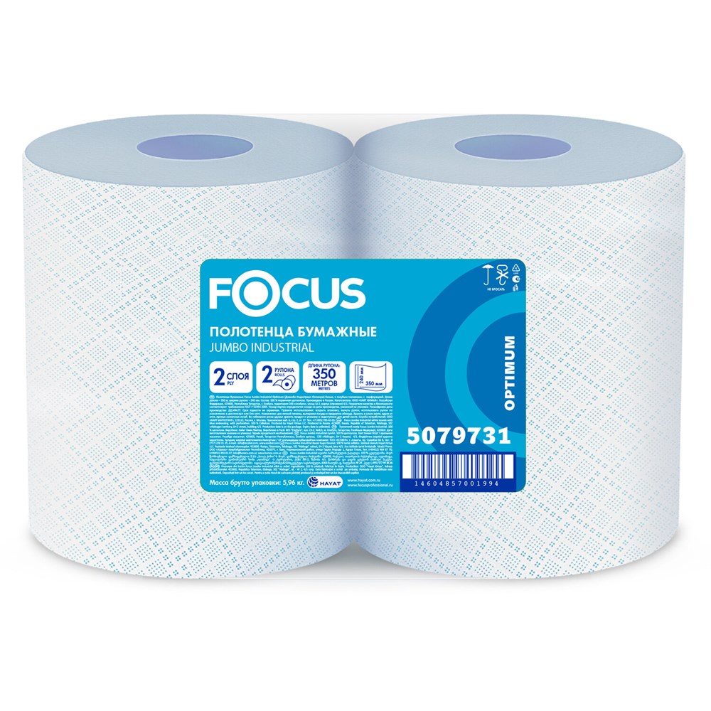 Бумага протирочная FOCUS (W1) Jumbo, 2 слоя, КОМПЛЕКТ 2 рулона, 350 м, 1000 листов, лист 24х35, 5079731