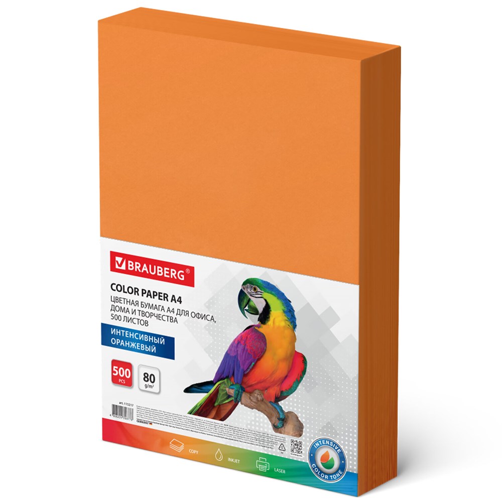 Цветная бумага BRAUBERG предназначена для использования в офисе и дома. Идеально подойдет для офисной техники, оформления писем и приглашений, в качестве разделителей для архивации, а также для детского творчества (изготовления поделок и аппликаций).Упакована в пачку из 500 листов формата А4. В упаковке бумага интенсивного тона оранжевого цвета. Листы бумаги плотностью 80 г/м2 подходят для офисной техники.