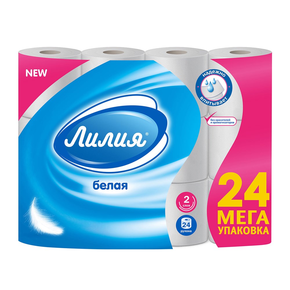 Туалетная бумага ЛИЛИЯ – бумажное изделие санитарно-гигиенического назначения. Может применяться не только в быту, но и в туалетных комнатах небольших офисов, гостиниц, предприятий общепита.2-слойная туалетная бумага из 100% целлюлозы отличается нежной текстурой и повышенной мягкостью. Наличие перфорации делает использование туалетной бумаги удобнее, а расход – экономичнее. Длина намотки составляет 13 м, 24 рулона в спайке.
