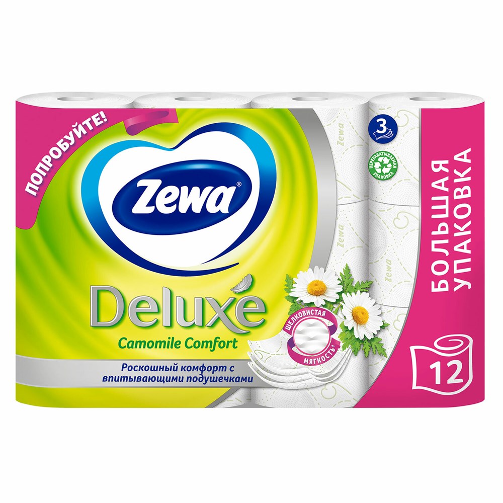 Попробуйте невероятно мягкую туалетную бумагу ZEWA Deluxe. Впитывающие подушечки, созданные по особой технологии, обеспечивают деликатное очищение. Удовольствие и комфорт – вашей коже это понравится!• Белая 3-слойная туалетная бумага с ароматом ромашки.