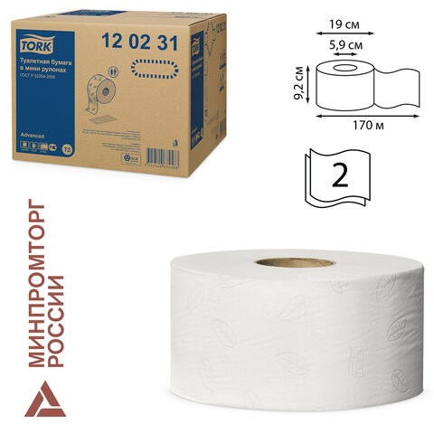 Бумага туалетная TORK, КОМПЛЕКТ 12шт, 170м, Advanced, 2-сл, белая