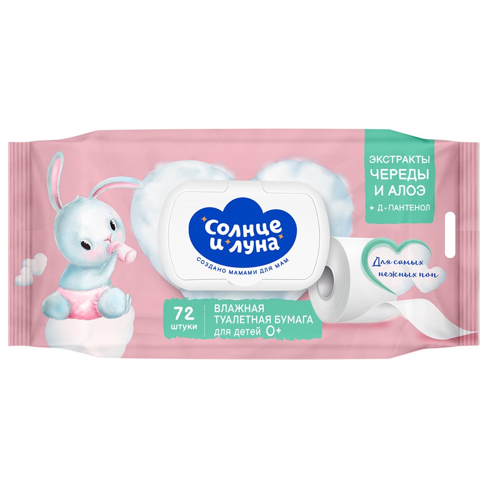 Бумага туалетная влажная детская 72 шт., СОЛНЦЕ И ЛУНА с экстрактом череды, крышка клапан