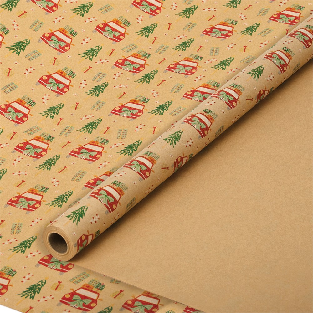 Бумага упаковочная крафт BIG SIZE новогодняя "XMAS Car", 0,7х10 м, ЗОЛОТАЯ СКАЗКА, 592194