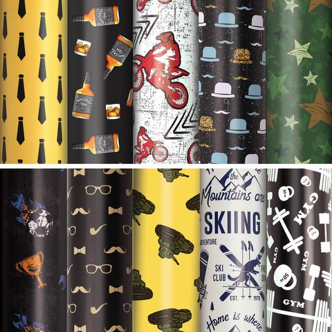 Бумага упаковочная подарочная мелованная For Men, 70x100 см, 10 дизайнов ассорти, ЗОЛОТАЯ СКАЗКА, 591914