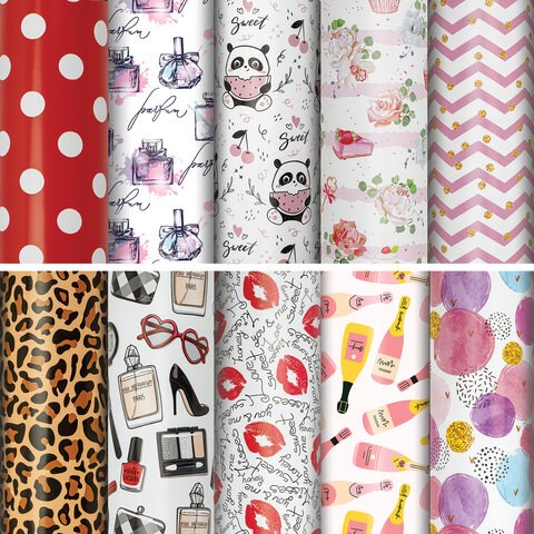 Бумага упаковочная подарочная мелованная For Women, 70x100 см, 10 дизайнов ассорти, ЗОЛОТАЯ СКАЗКА, 591915