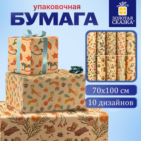 )Упаковочная бумага «Christmas Kraft» ЗОЛОТАЯ СКАЗКА отлично подходит для новогодней упаковки подарков, а также для рукоделия, декора и других дизайнерских решений.