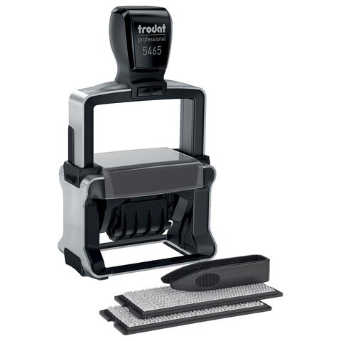 Датер самонаборный металлический, 4 строки+дата, оттиск 56х33 мм, сине-красный, TRODAT 5465, кассы в комплекте
