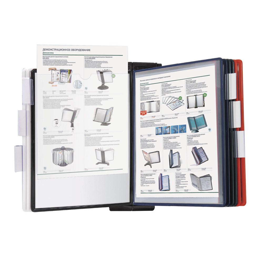 Демосистема настенная, регулируемый угол наклона, 10 цветных панелей А4, черная, BRAUBERG "SOLID", 236720