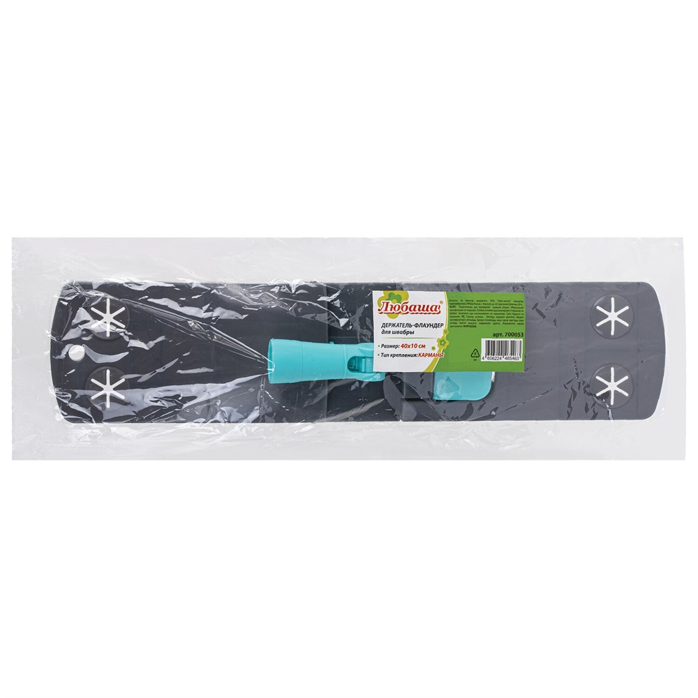 Держатель-флаундер ЛЮБАША предназначен для профессиональной и бытовой, влажной и сухой уборки полов, сбора пыли со стен и мебели.Используется в комплекте с ручкой и насадкой с карманами. Подходит для использования в устройствах отжима. Изготовлен из качественного пластика. Складывается при нажатии на кнопку. Благодаря плоской вращающейся платформе и длинной ручке швабра-флаундер способна проникнуть в труднодоступные места. Шарнирное соединение. Складной механизм. Размер – 40х10 см.