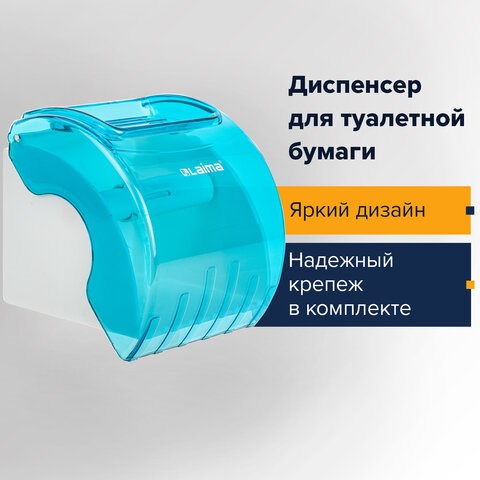 Диспенсер для бытовой туалетной бумаги LAIMA, тонированный голубой, 605043