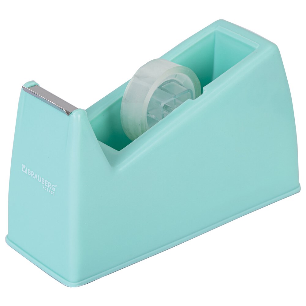 Диспенсер BRAUBERG предназначен для облегчения использования клейкой ленты, предоставляет легкий доступ к скотчу, упрощает процесс упаковки и ремонта предметов, незаменим при большом объеме работ.Диспенсер дает возможность легкой и быстрой нарезки одной рукой и позволяет экономить время. Может применяться как для офисных, так и бытовых нужд с настольным типом размещения, отличается тяжелым и устойчивым корпусом, имеет основание с не скользящим покрытием. Изготовлен из ударопрочного пластика. Подходит для ленты шириной до 26 мм (входит в комплект). Эстетически приятный внешний вид в мятном цвете отлично впишется в любой офис или домашний интерьер.