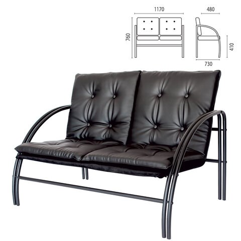 Диван двухместный "Аксель", 1170х730х760 мм, на металлическом каркасе, кожзам, черный